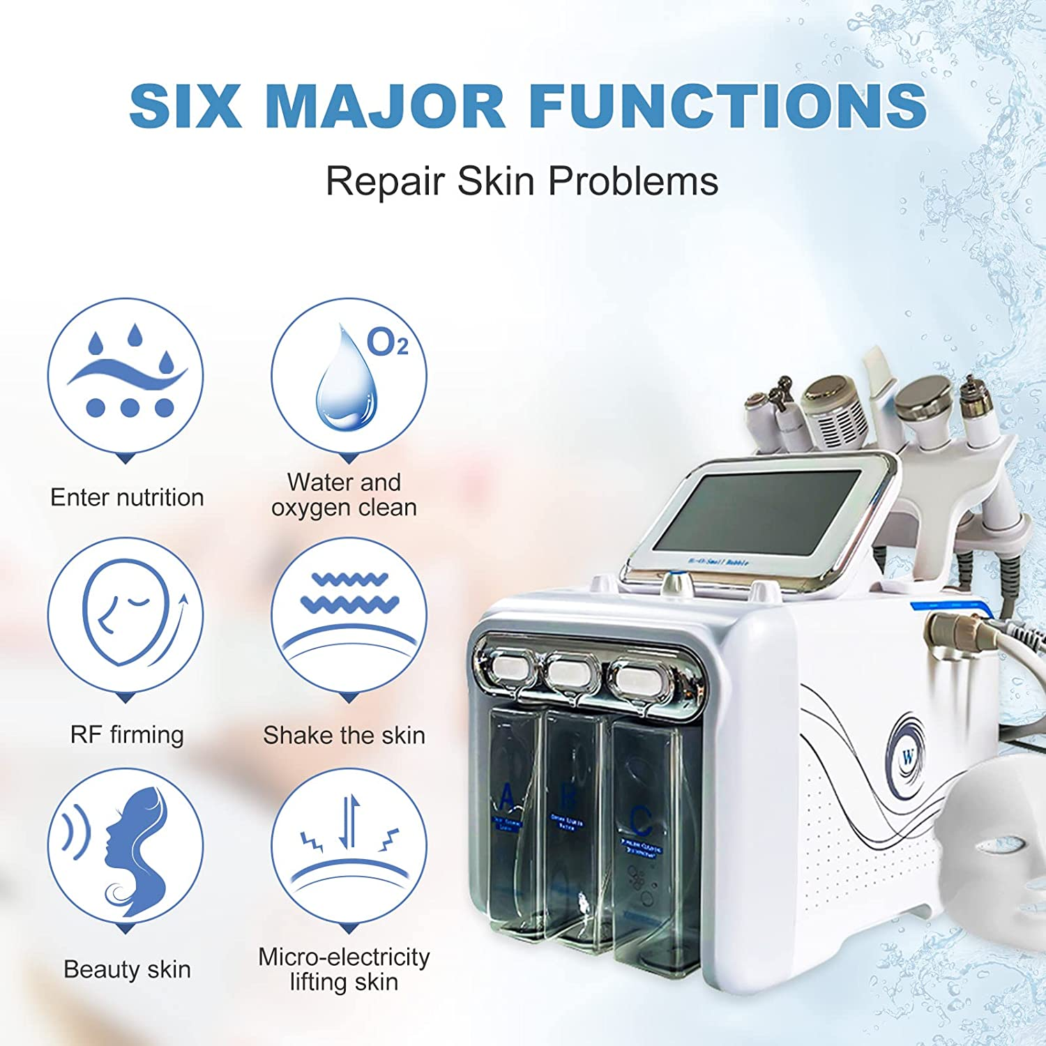 • ✅PROFESSIONAL BEAUTY - Once, it is equivalent to using 8 hydrating masks. 7 In 1 face care machine, with 6 heads, 1 facial mark. Different handle for solving a variety of skin problems, make your skin tender and beautiful.