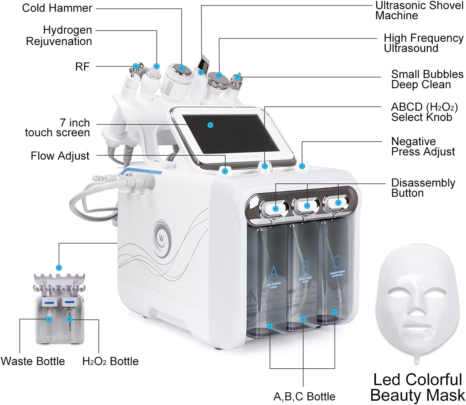 7 in 1 Hydro Facial Machine, Professional Hydro-Dermabrasion Facial Microdermabrasion Machine Blackhead Remover Pore Vacuum Cleaner, Facial Skin Care Device Equipment